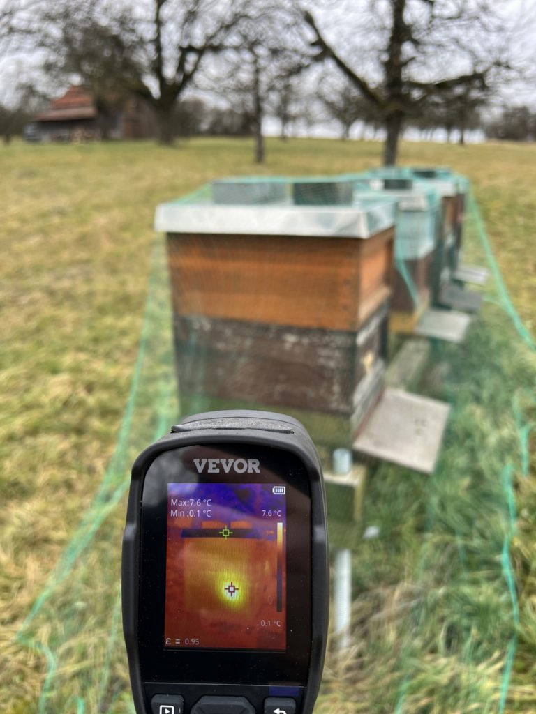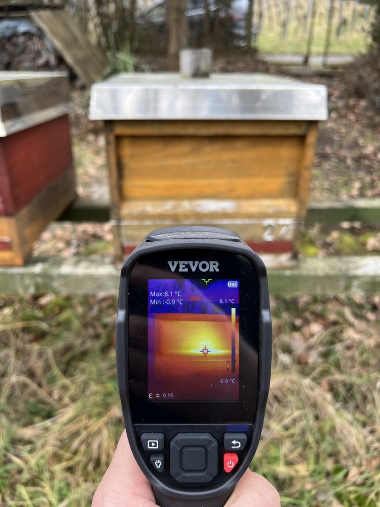 Man möchte schon gerne wissen, wie es um die Bienenvölker steht. Stören möchte ich sie aber auch nicht. Lösung: Wärmebildkamera.