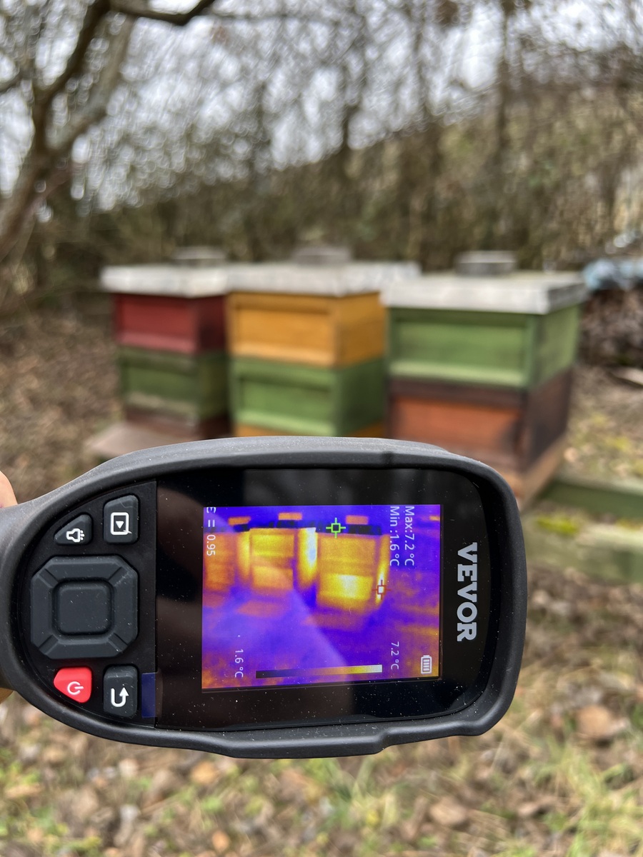 Man möchte schon gerne wissen, wie es um die Bienenvölker steht. Stören möchte ich sie aber auch nicht. Lösung: Wärmebildkamera.